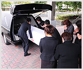 専門スタッフによって棺を寝台車へ運び出します。次いで火葬場へ向かって、故人様を搬送いたします。