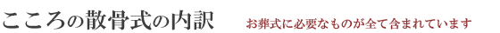 こころの散骨式は、火葬式プランに遺骨の粉末化・散骨を加えたお葬式です。