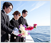ご依頼主様に代わって、遺骨を海に撒きます。